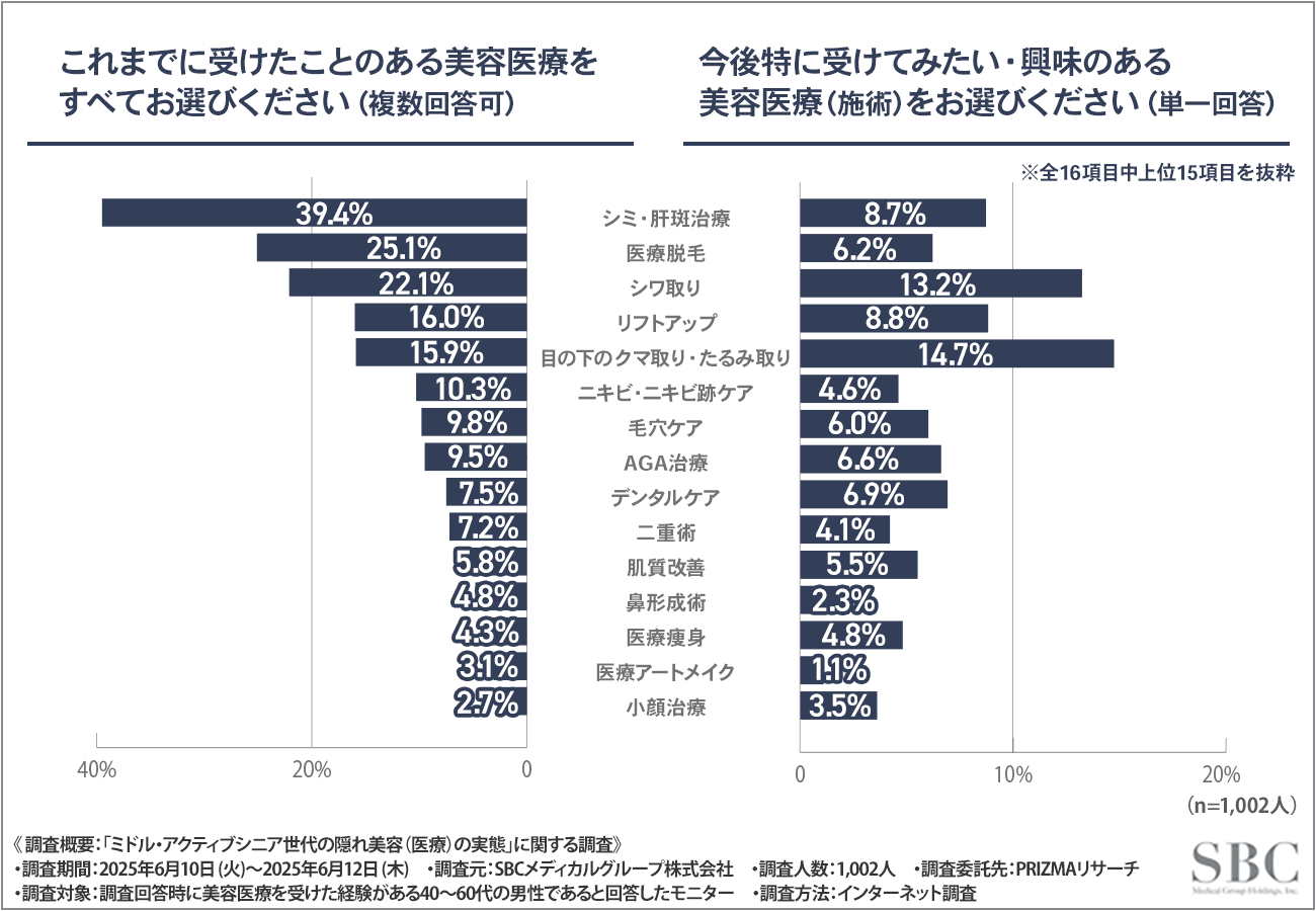 【40〜60代男性ミドル・プレシニア世代1,002人に調査】男性の見た目改革は常識に?美容医療に踏み出す理由と「隠れ美容」のリアル | SBCメディカルホールディングス