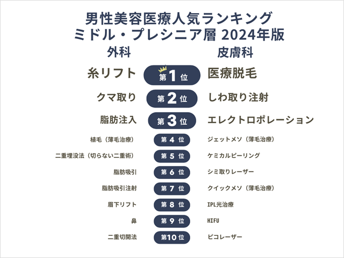 ■男性の「見た目改革」が加速中!ミドル・プレシニア世代に刺さる「湘南美容クリニック 男性美容医療人気ランキングTOP10」